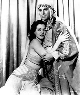 La respuesta de María fue: ¡Sí, me casaría contigo aunque tuvieras que salir para la guerra al día siguiente!, pero dame unos minutos para consultar con mi astrólogo respecto a la fecha que has elegido. Carroll Lighter Norwell, famoso astrólogo de Hollywood, le dió una respuesta favorable y fijaron la boda el día que Jean Pierre escogió: 13 de Julio de 1943. María le regalo a Jean Piere un brazalete con la siguiente dedicación: *Adoro a Jean Pierre porque me regala rosas blancas; si me regalara un fino obsequio de Cartier no me haría tan feliz.* La boda se realizó en la casa de María. La dama de honor fue Janine Crespin, acompañada del *best man* Charles Boyer, el pintor Frederic Sprague fue el organista que interpretó la marcha nupcial y como invitados de honor estaban su astrólogo, su jardinero y dos masajistas húngaros. En la ceremonia los recién casados se besaron 112 veces. Lamentablemente, para María, Aumont tuvo que partir a la guerra, poco tiempo después. ¡Por fin! La Universal ha descifrado la complicada clave de sus encantos, eligiéndola como el centro de la que se perfila como acertada producción para el cinema, que llevará el sugerente título de: ARABIAN NIGHTS (*Las 1,001 Noches*). Ambientado en el maravillos Cercano Oriente, este film, en tecnicolor, ofreció a Montez la oportunidad de vestir el tradicional ropaje oriental. Sus ojos rasgados y sus facciones fueron espléndidamente resaltados por los turbantes, mientras las túnicas, los velos se acoplaron increíblemente bien con su silueta. El bello efecto logrado en María por dichos atuendos causó una notable influencia en las modas occidentales, especialmente con los turbantes. Luego de 3 años de esfuerzos ininterrumpidos, ella comenzaba a disfrutar las bondades de la victoria. Esta fue la primera película que co-protagonizó con Jon Hall y Sabú.